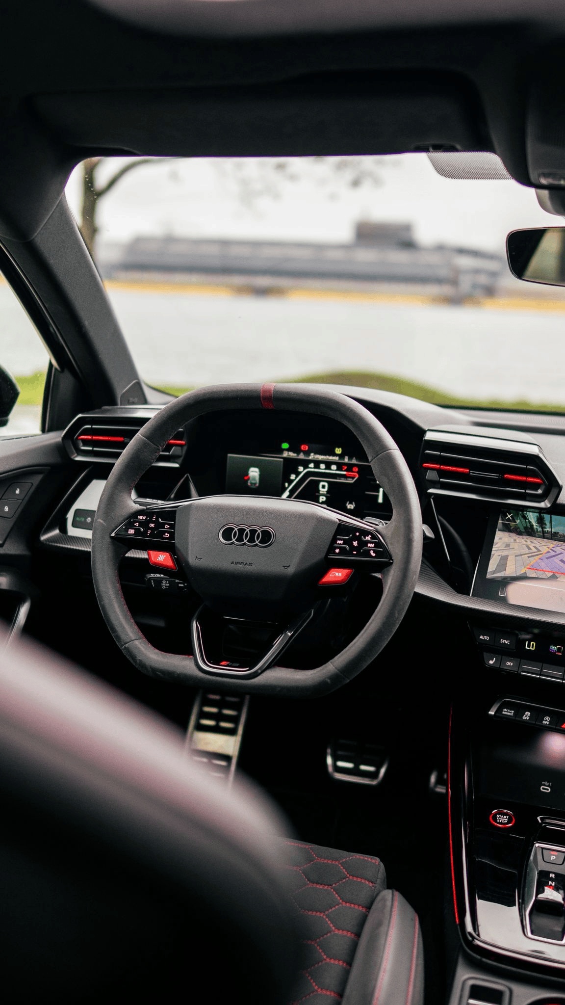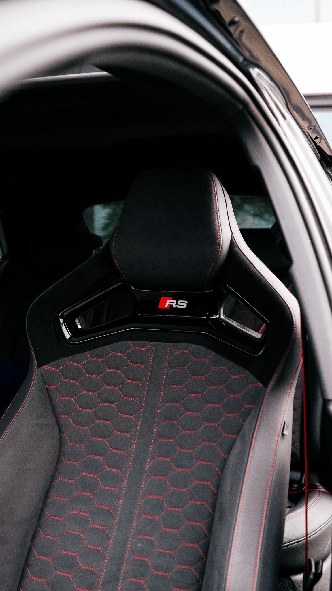 Nieuw model (2025). Mythos Black met exclusieve RS-kuipstoelen.
